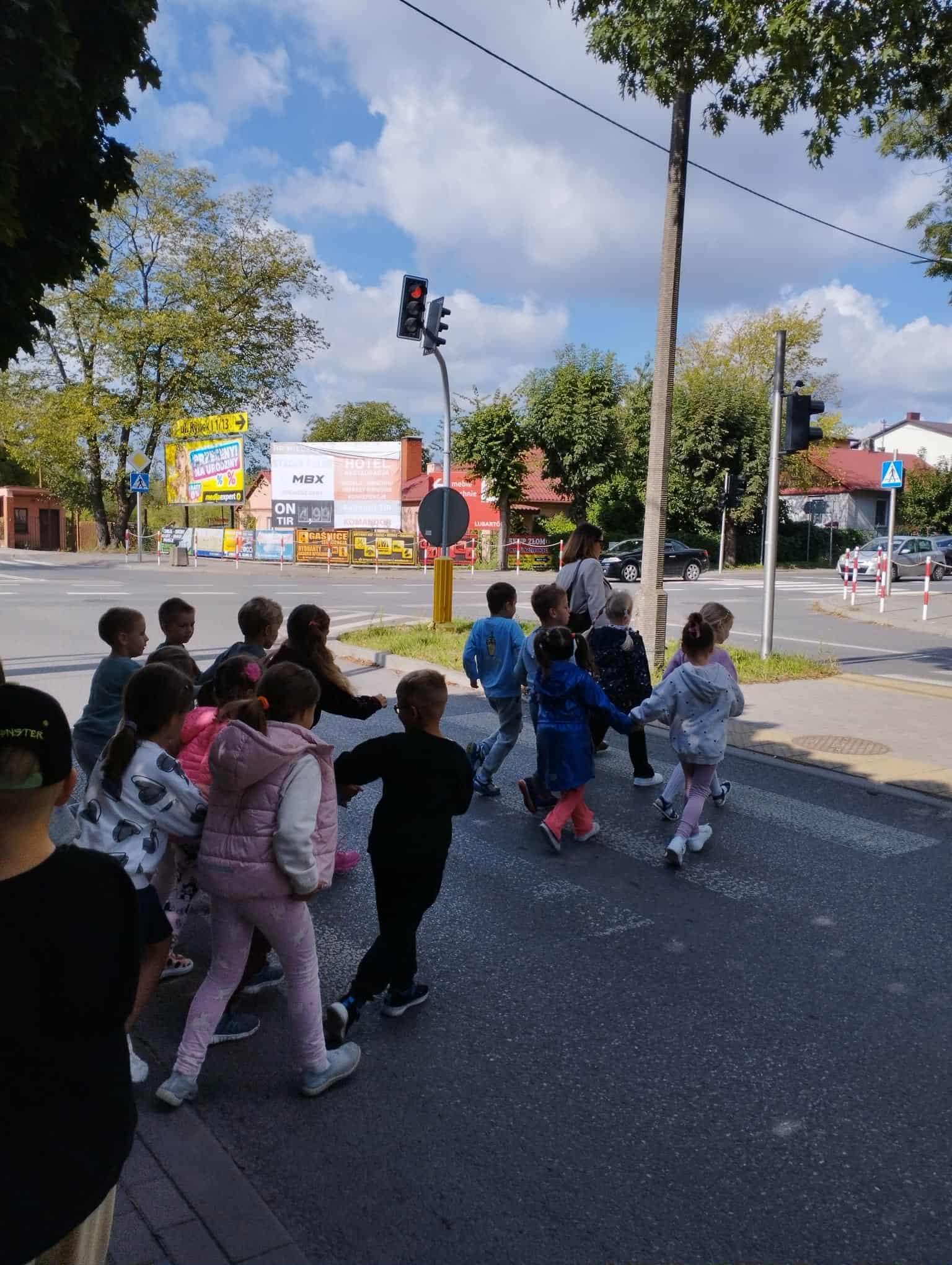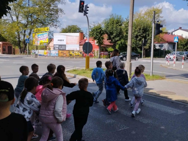 18 września przedszkolaki z grupy Wiewiórki wybrały się na wycieczkę na pobliskie skrzyżowanie. Celem wycieczki było przypomnienie i utrwalenie sobie zasad ruchu drogowego, jak również zaobserwowanie zachowania się pieszych i kierowców. Dzieci z uwagą obserwowały ruch uliczny, nazywały pojazdy oraz poznane znaki drogowe. Dzieci przede wszystkim uczyły się właściwego sposobu przechodzenia przez jezdnię. Teraz już każdy przedszkolak wie, jak należy zachowywać się na ulicy.