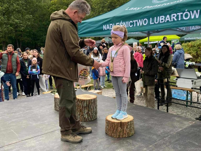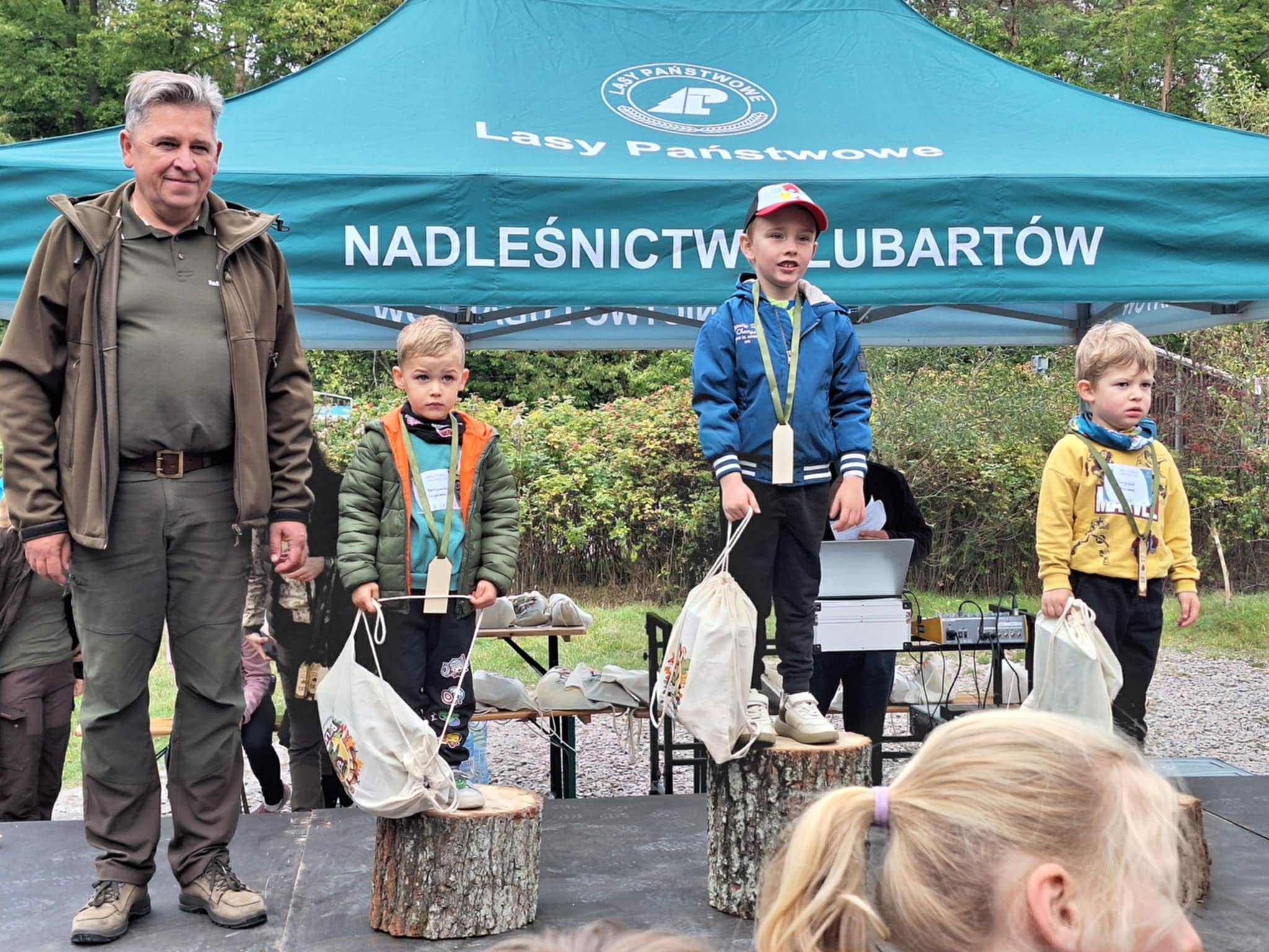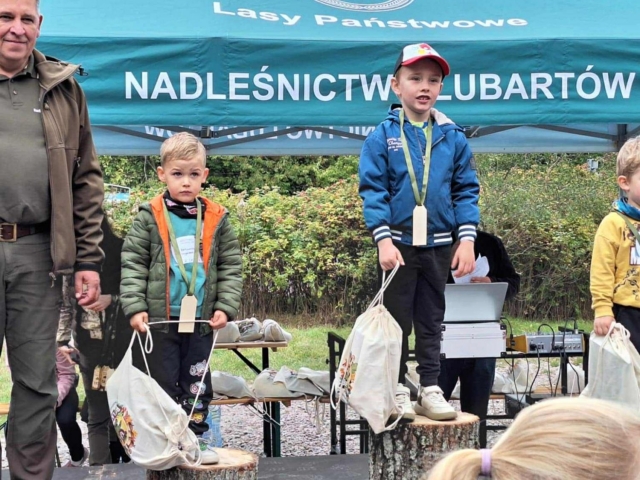 Dziś, tj. 28 września na terenie Lasów Kozłowieckich koło Lubartowa odbyła się kolejna bo już X edycja biegu „Biegam Bo Lubię Lasy” organizowanego przez Nadleśnictwo Lubartów. Celem wydarzenia było popularyzowanie biegów wśród dzieci i dorosłych oraz upowszechnianie zdrowego stylu życia i aktywnego spędzania czasu. Mimo niesprzyjającej pogody na starcie biegu stawiły się przedszkolaki z grupy PAND i ELFÓW. Po krótkiej rozgrzewce dzieci rozpoczęły bieg pokonując wyznaczony dystans. Na mecie na każdego czekał medal i wielkie brawa. Miło nam poinformować, iż Klara Rybak w biegu na 100 metrów zajęła trzecie miejsce a Aleksander Szymczak na dystansie 50 metrów zajął drugie miejsce. Serdecznie gratulujemy osiągnięć i brawa dla wszystkich miłośników biegania.