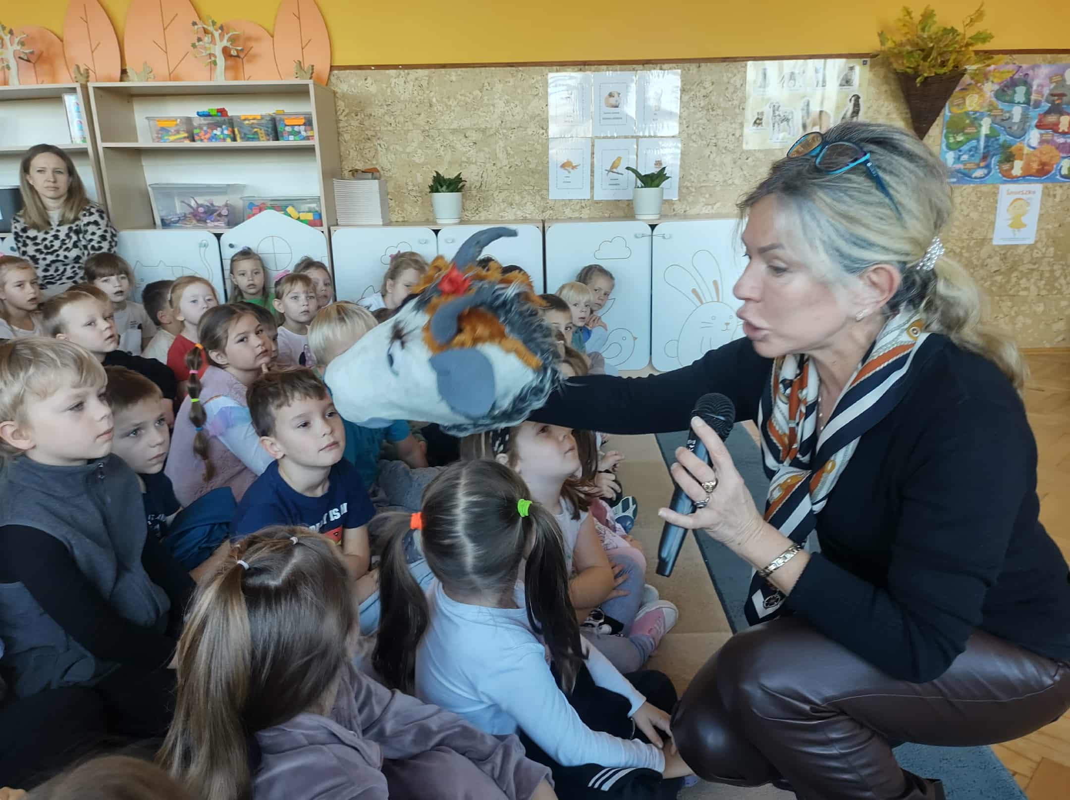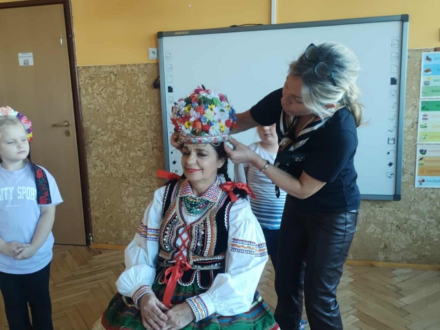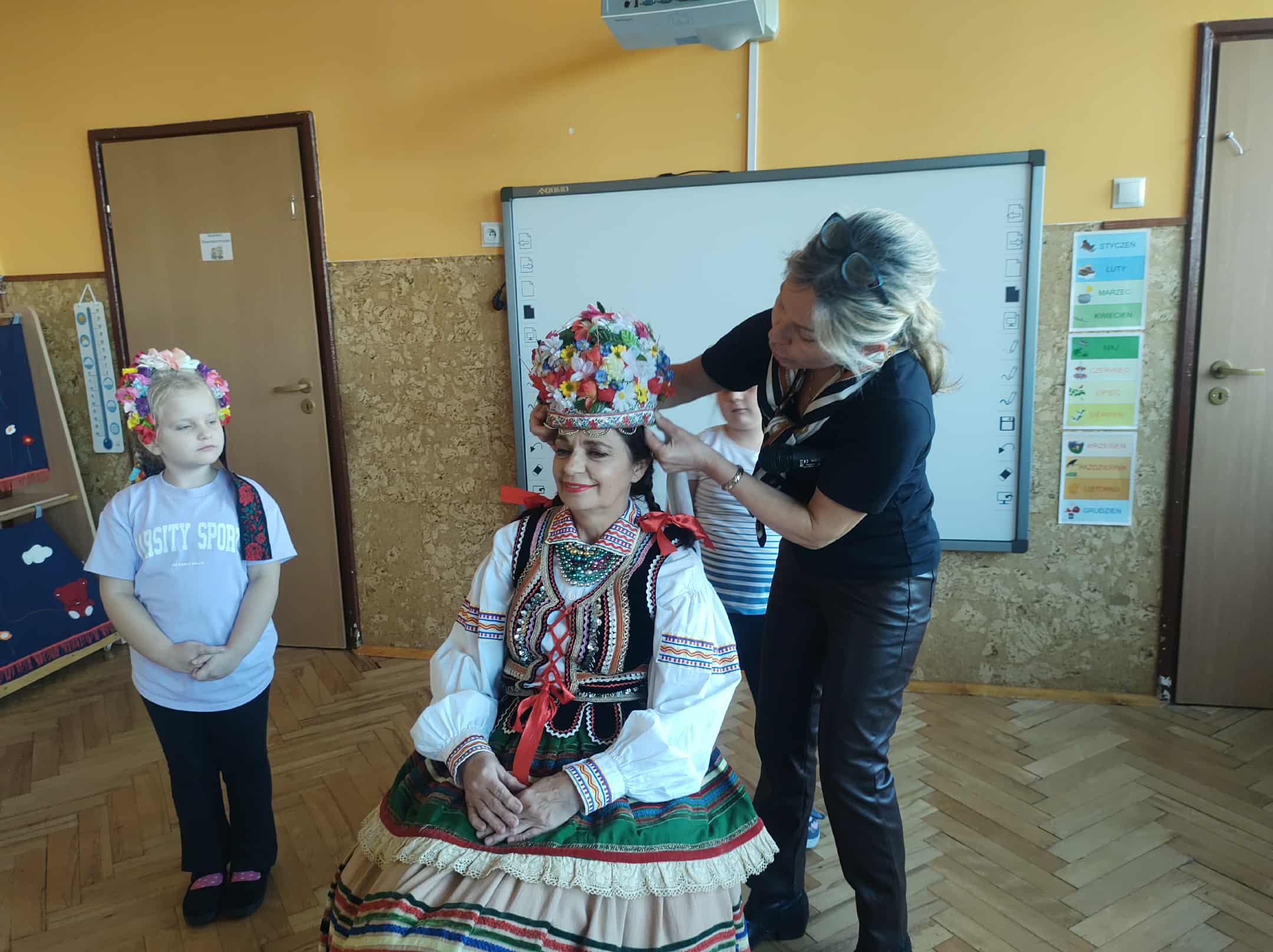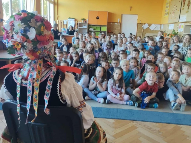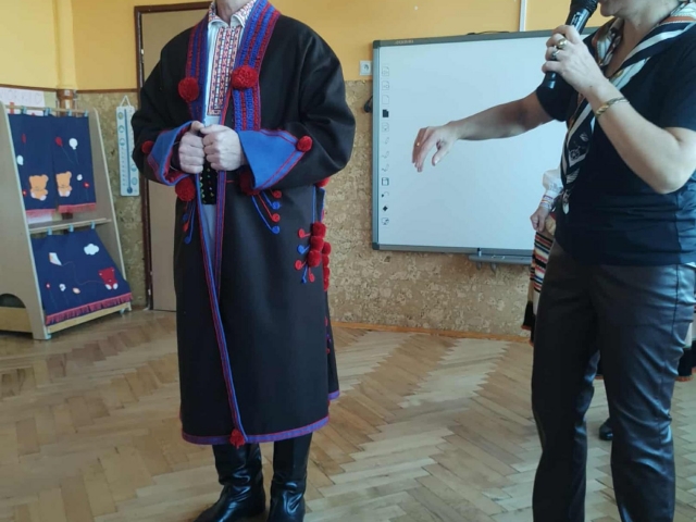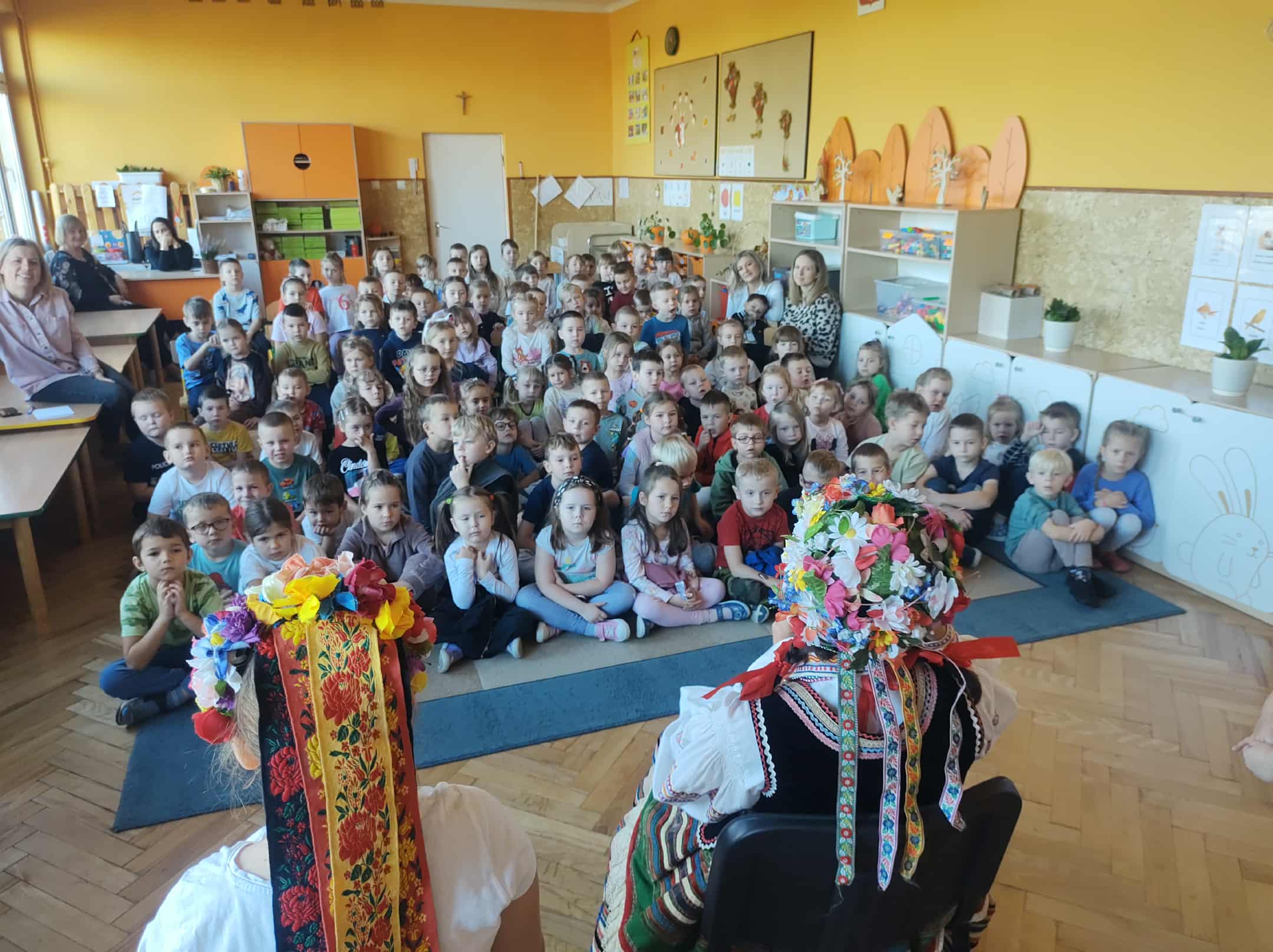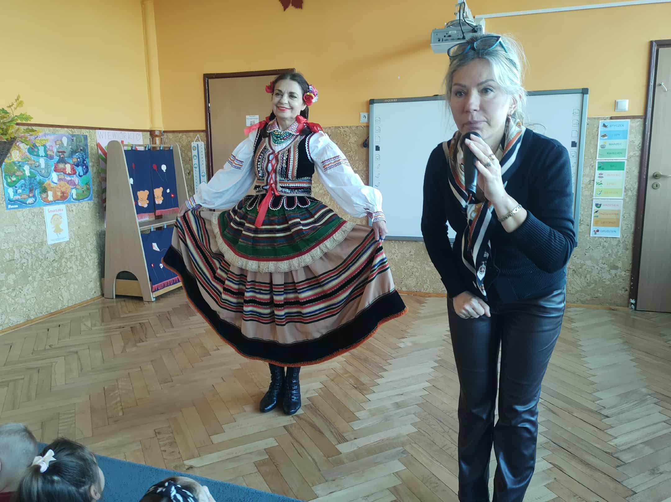 Całe widowisko uświetniła przedszkolakom para tancerzy w lubelskich strojach ludowych tzw. krzczonowskich , na których pięknie reprezentowały się charakterystyczne motywy zdobnicze. Przedszkolakom został zatańczony walczyk lubelski, cygan, mach oraz obereczek po lubelsku. Na koniec dzieci poznały jeden z lubelskich obrzędów weselnych– czyli oczepiny młodej pary. Przed nami listopad… Gdzie tym razem zabierze nas Pani Muzyka???