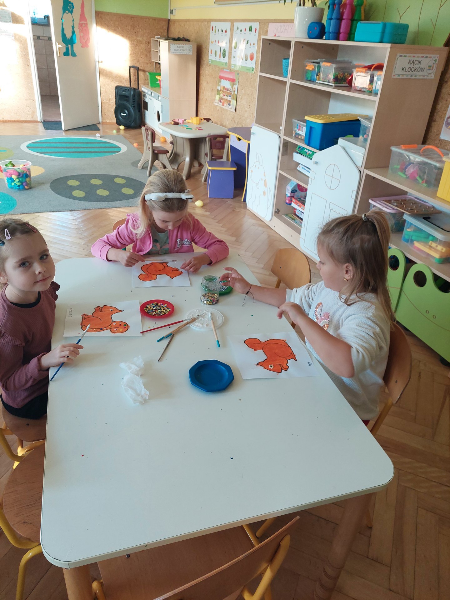 Dzieci z grupy Skrzaty uczestniczą w realizacji innowacji pedagogicznej pt. „W świecie emocji”. W pierwszym bloku przedszkolaki poznały główną bohaterkę bajki – wiewióreczkę Lusię. Rozpoznawały i nazywały emocje, które towarzyszyły Lusi podczas spotkania z wróbelkiem i wroną. Następnie Skrzaciki rozwiązywały zagadki, ogrywały scenki oraz malowały wiewióreczkę i ozdabiały jej ogonek. Poznały również piosenkę o emocjach. Różnorodne aktywności dostarczyły dzieciom wielu wrażeń, rozbudziły zaciekawienie projektem i rozwinęły umiejętności.