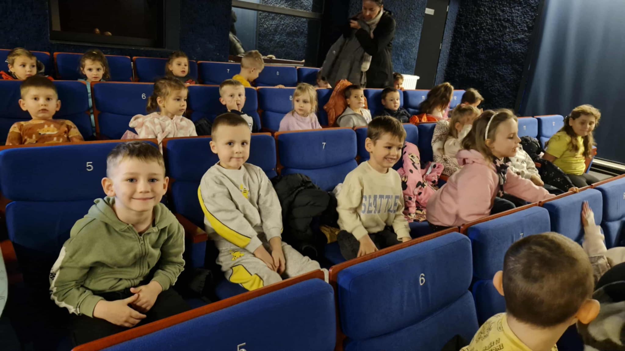 Dnia 28.10 dzieci z grupy Myszki i Skrzaty wybrały się do kina na film animowany „Emma i Kacper – najlepsi przyjaciele” w ramach projektu „Nowe Horyzonty Edukacji Filmowej”. Film miał charakter edukacyjny i poruszał ważne tematy związane z przyjaźnią, wzajemną pomocą i zrozumieniem. Dzieci z dużym zainteresowaniem śledziły przygody bohaterów, a po seansie chętnie dzieliły się swoimi wrażeniami. Była to ciekawa i wartościowa lekcja o znaczeniu przyjaźni oraz o tym, jak ważne jest wspieranie się nawzajem w codziennych sytuacjach.