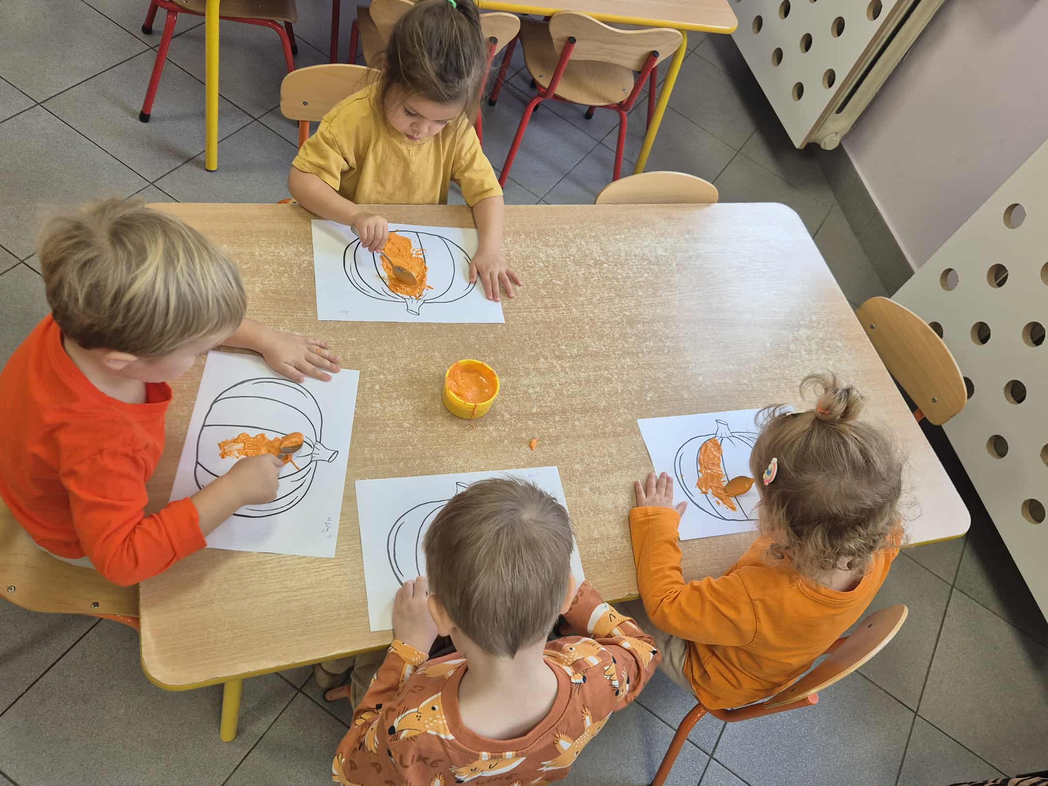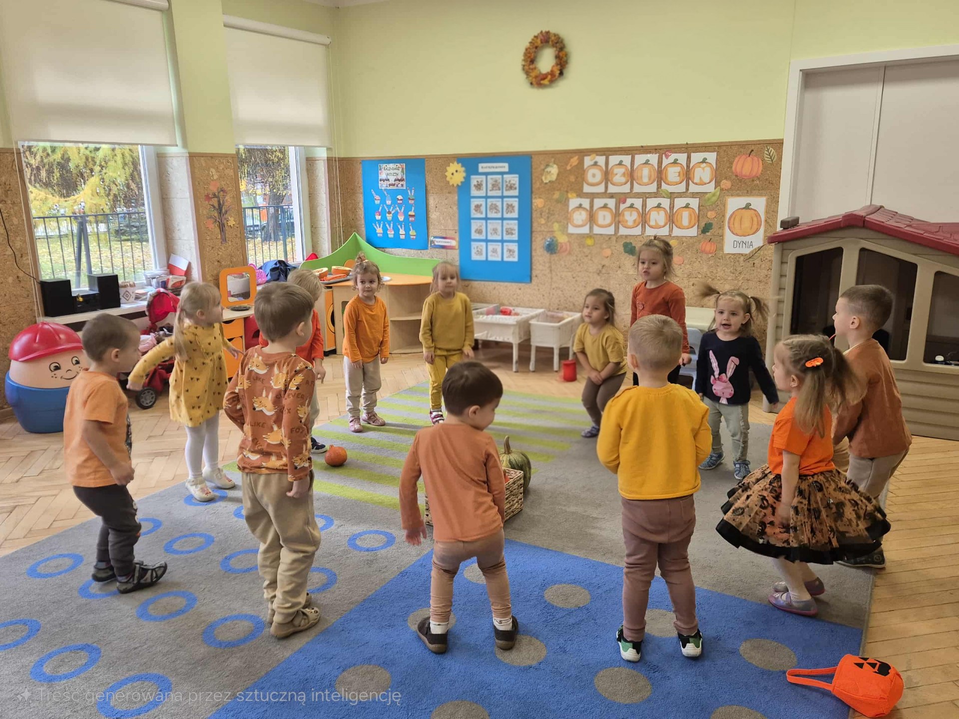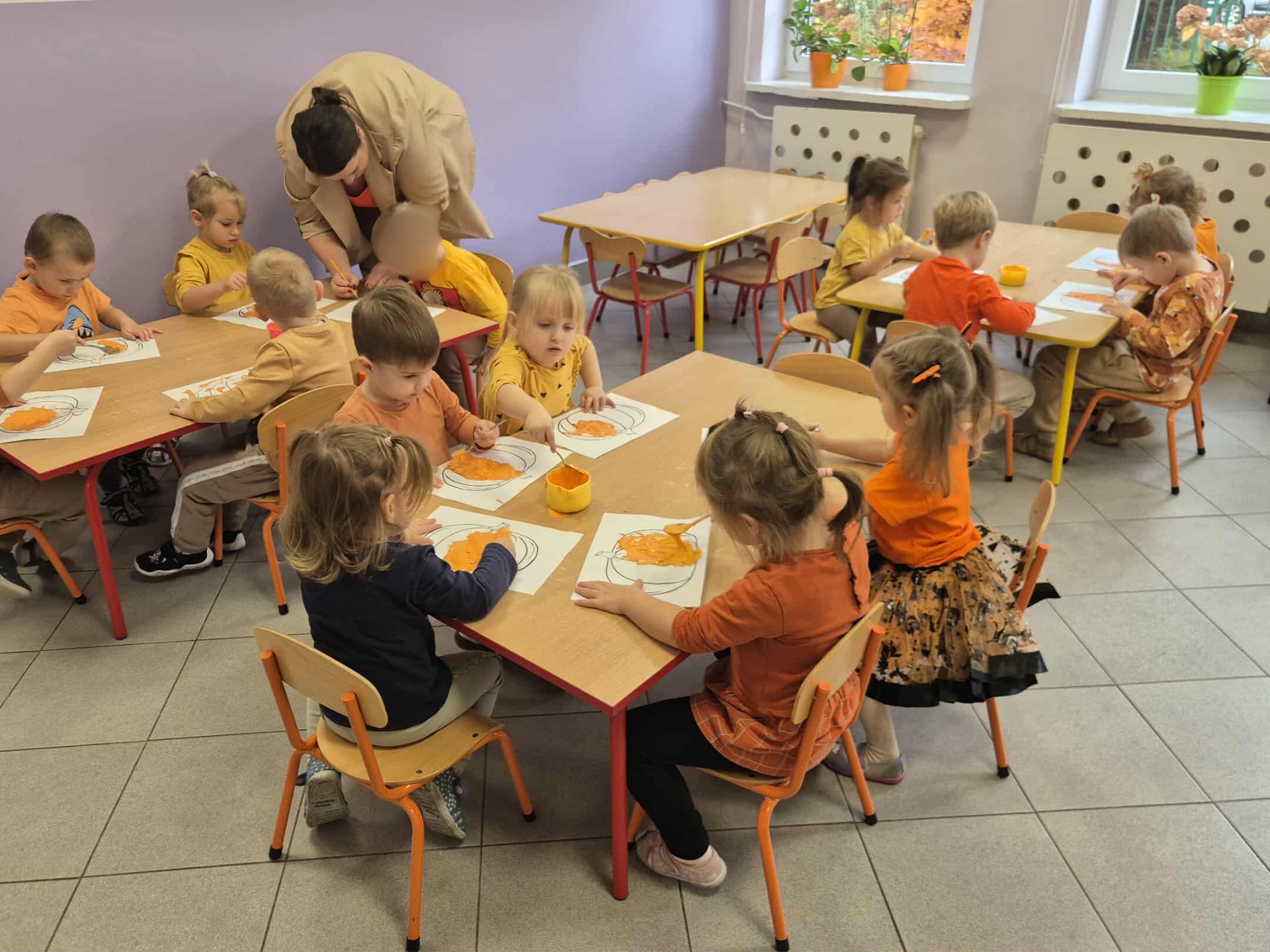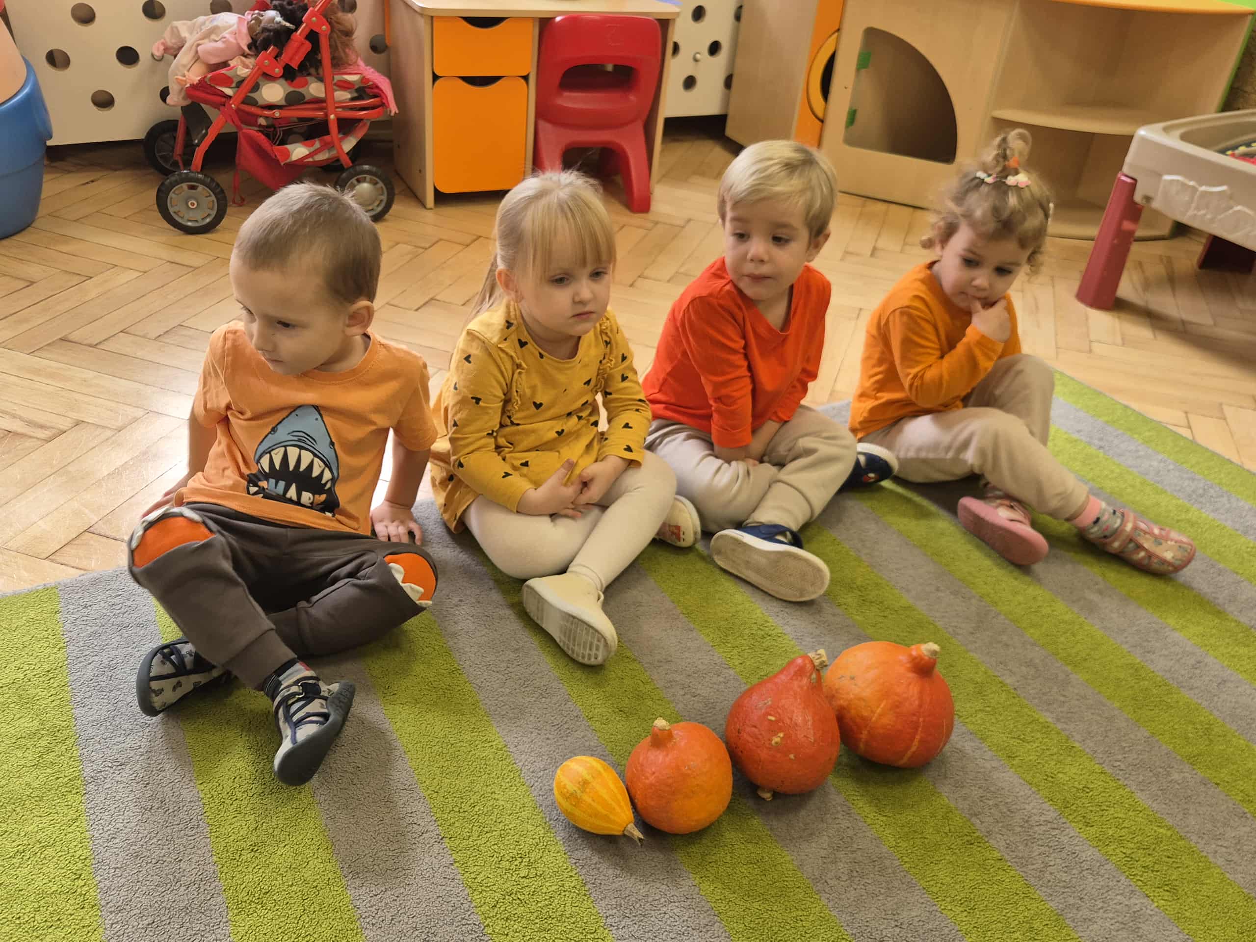 W naszym przedszkolu obchodziliśmy wyjątkowe święto – Dzień Dyni. Tego dnia dzieci z grupy „Słoneczka” przyszły ubrane w różne odcienie pomarańczu, tworząc niezwykle radosną, jesienną atmosferę. Wyruszyliśmy w niezwykłą podróż do „Krainy Dyni”, gdzie czekały na nas różne zabawy, zagadki i zadania z tym wyjątkowym warzywem w roli głównej. Podczas zajęć wspólnie poznawaliśmy dynię – dowiedzieliśmy się, jak wygląda w środku, jaki ma kolor i zapach. Dzieci dowiedziały się, że z dyni można przygotować wiele pysznych potraw, a nawet zdrowe przekąski z jej pestek, które mieliśmy okazję spróbować. Na zakończenie dnia wykonaliśmy pracę plastyczną – dzieci malowały swoje dynie przy pomocy magicznych farbek, które puchły po podgrzaniu. Efekty były niesamowite, a radość z tworzenia ogromna! To był dzień pełen zabaw, radości i pomarańczowego koloru – prawdziwe święto jesieni w grupie „Słoneczka”!