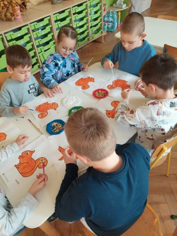 30 października dzieci z grup: Skrzaty, Tygryski i Wiewiórki wybrały się do Spółdzielni Mieszkaniowej, aby obejrzeć musical dla dzieci pt. ,,Księżniczka na ziarnku grochu’’. Było to niezwykłe widowisko , które przeniosło naszych małych widzów w krainę baśni, gdzie wrażliwość i empatia były najważniejszymi bogactwami. W tym baśniowym świecie sprawy serca były również ważniejsze niż bogactwo czy posiadany tytuł. Magiczne ruchome scenografie, piękne kostiumy, lalki oraz aktorska muzyka przeniosła wszystkich do miejsca, gdzie wszystko stało się możliwe. Dzieci mogły aktywnie uczestniczyć w spektaklu, wspierając bohaterów w ich przygodach, a sama baśń przypomniała dzieciom, że zjednoczenie sił i wspólna solidarność mogą pokonać każdą napotkaną trudność.