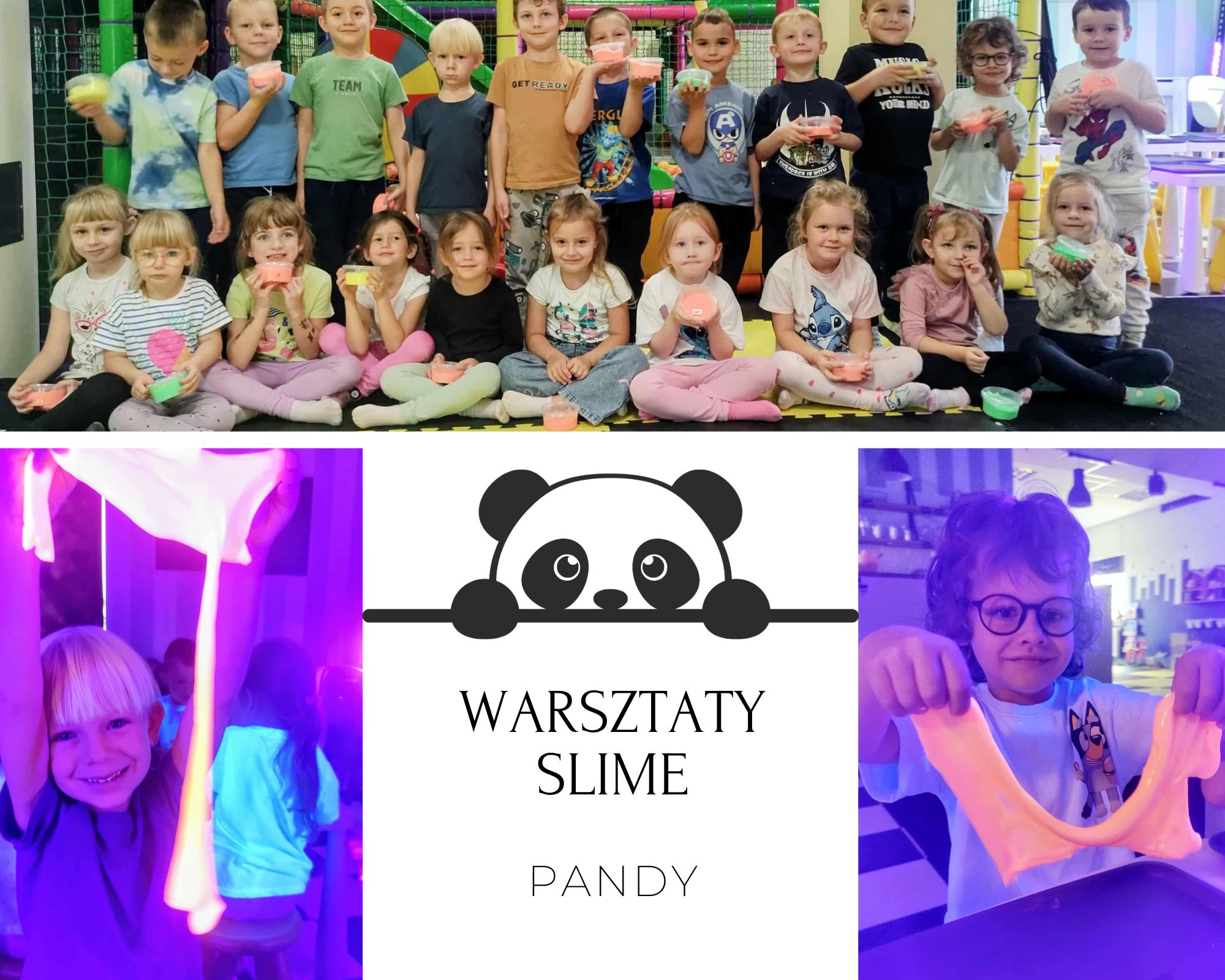 6 pażdziernika Pandy wybrały się do Sali Zabaw „Kawa i Zabawa” na WARSZTATY SLIME. Była to wyjątkowa okazja do wspólnej, świetnej i kreatywnej zabawy. Dzieci mogły stworzyć własne masy plastyczne mieniące się różnymi odcieniami. Kolorowa masa z której można było stworzyć różne formy i kształty, sprawiła przedszkolakom dużą frajdę. Zabawa różnego rodzaju masami to świetne zajęcie, które oddziałuje na zmysł dotyku, przez co korzystnie wpływa na integrację sensoryczną dziecka. Po skończonych zajęciach Pandy spakowały swoje wyroby do pojemników i zabrały do domu. Slime to świetna zabawa, która skradła nasze serca !!!
